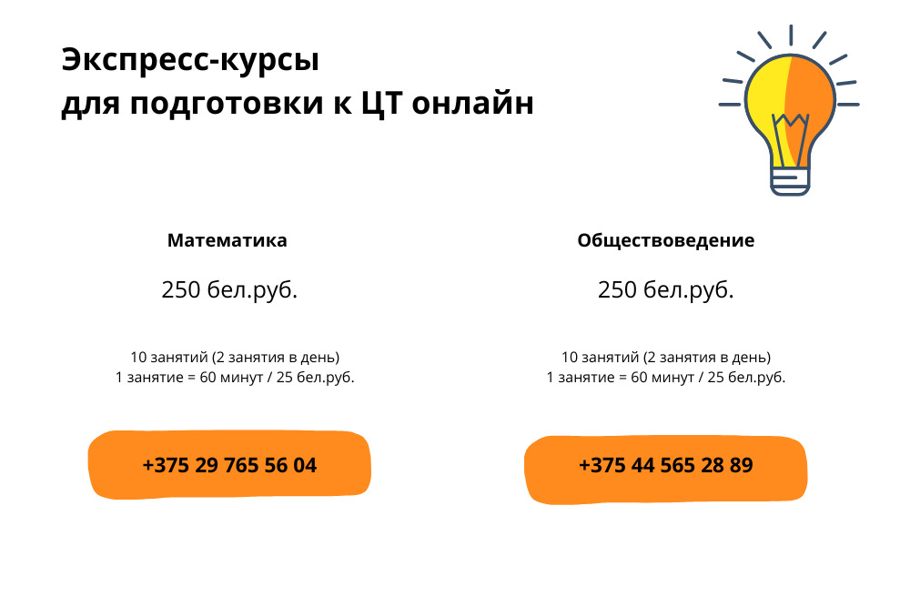 Занятия проводят лучшие преподаватели нашей онлайн-школы. Мы повторим темы, которые наиболее часто встречаются в заданиях ЦТ, решим наиболее трудные и неочевидные задания предыдущих лет. Дадим рекомендации по успешному прохождению ЦТ и ЦЭ.